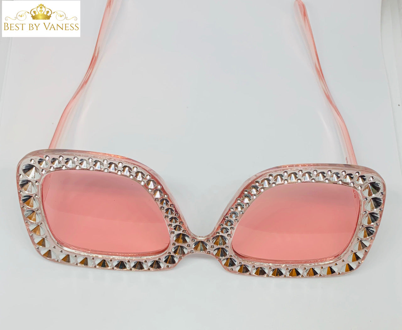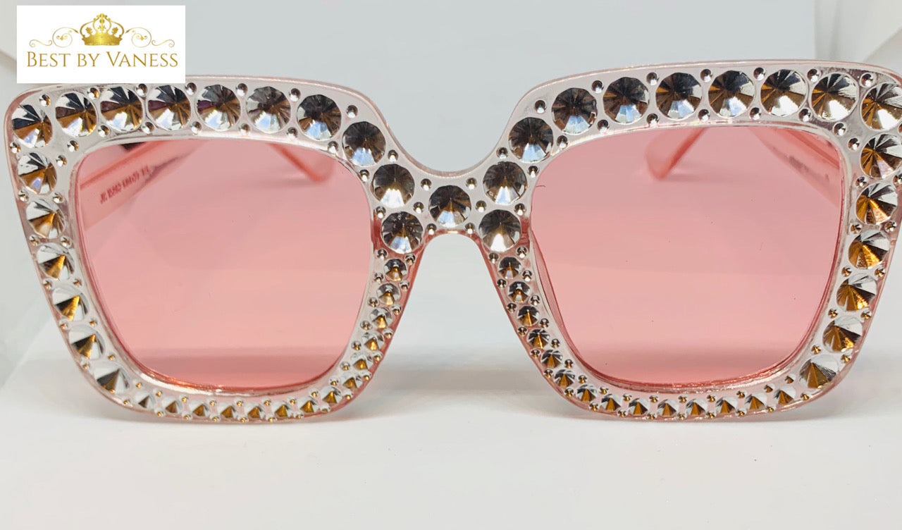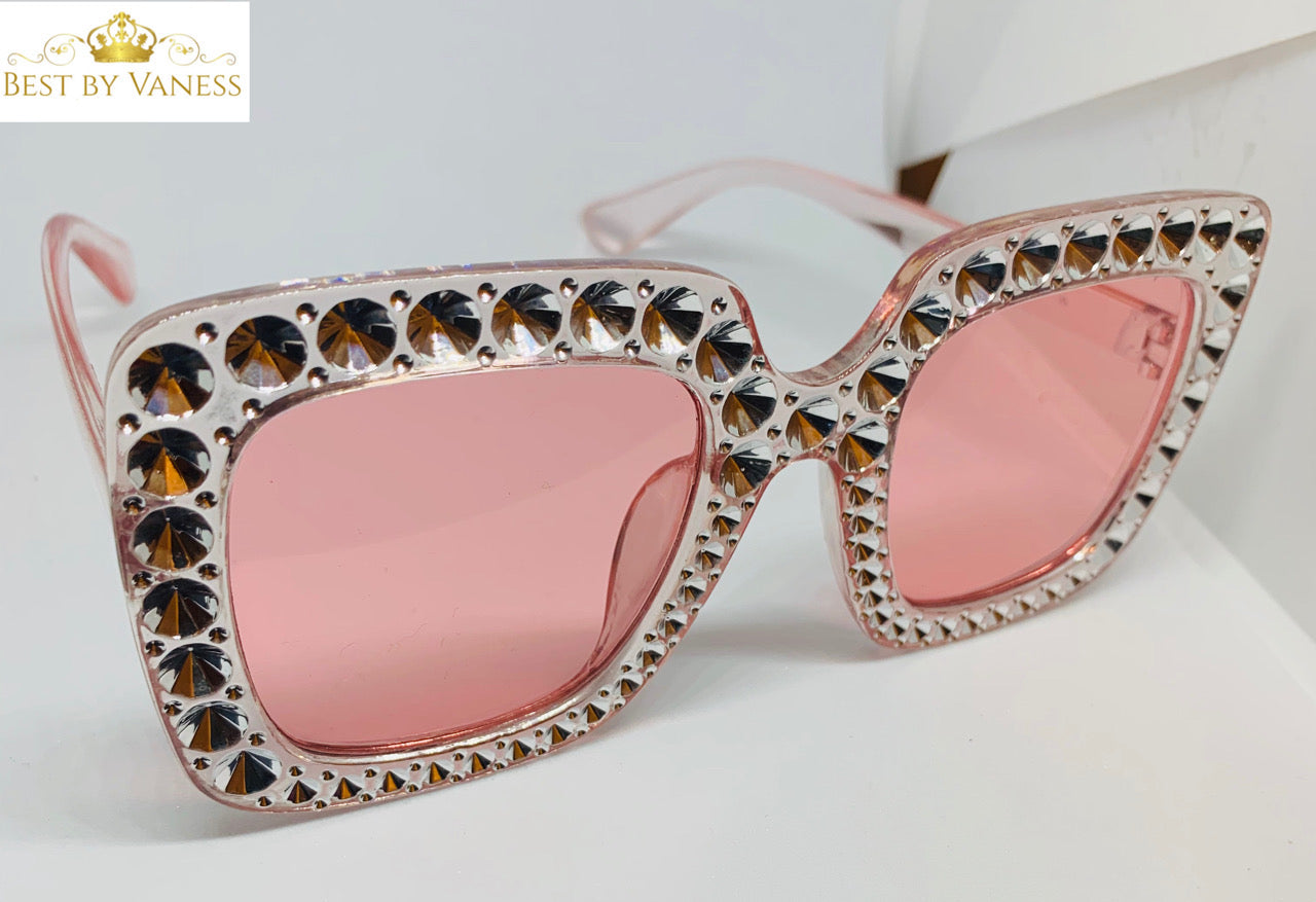 Oversized Pink Square Frame Sunglasses with Rhinestones
