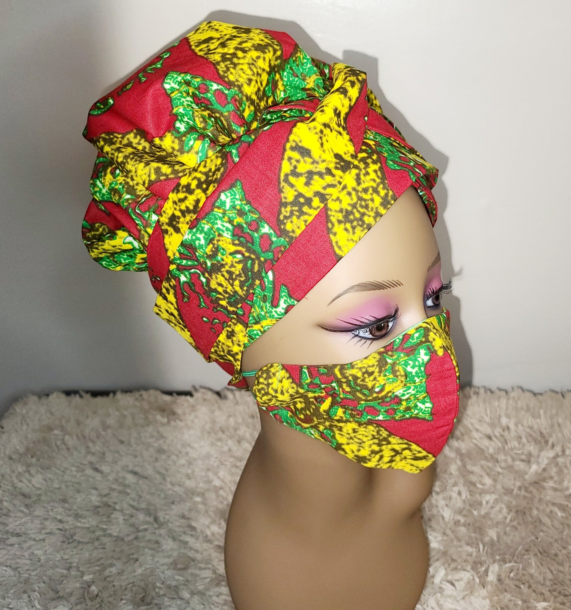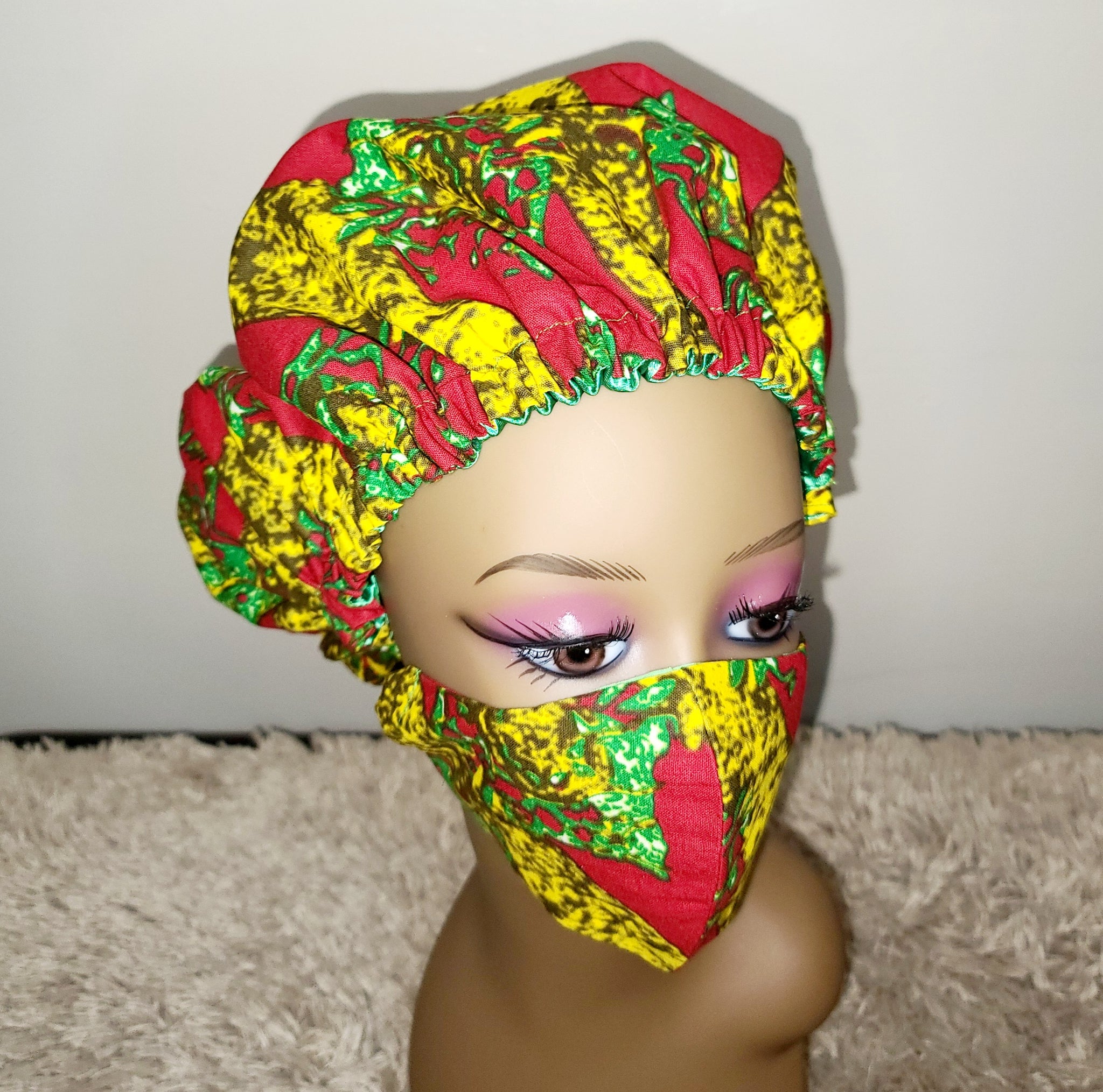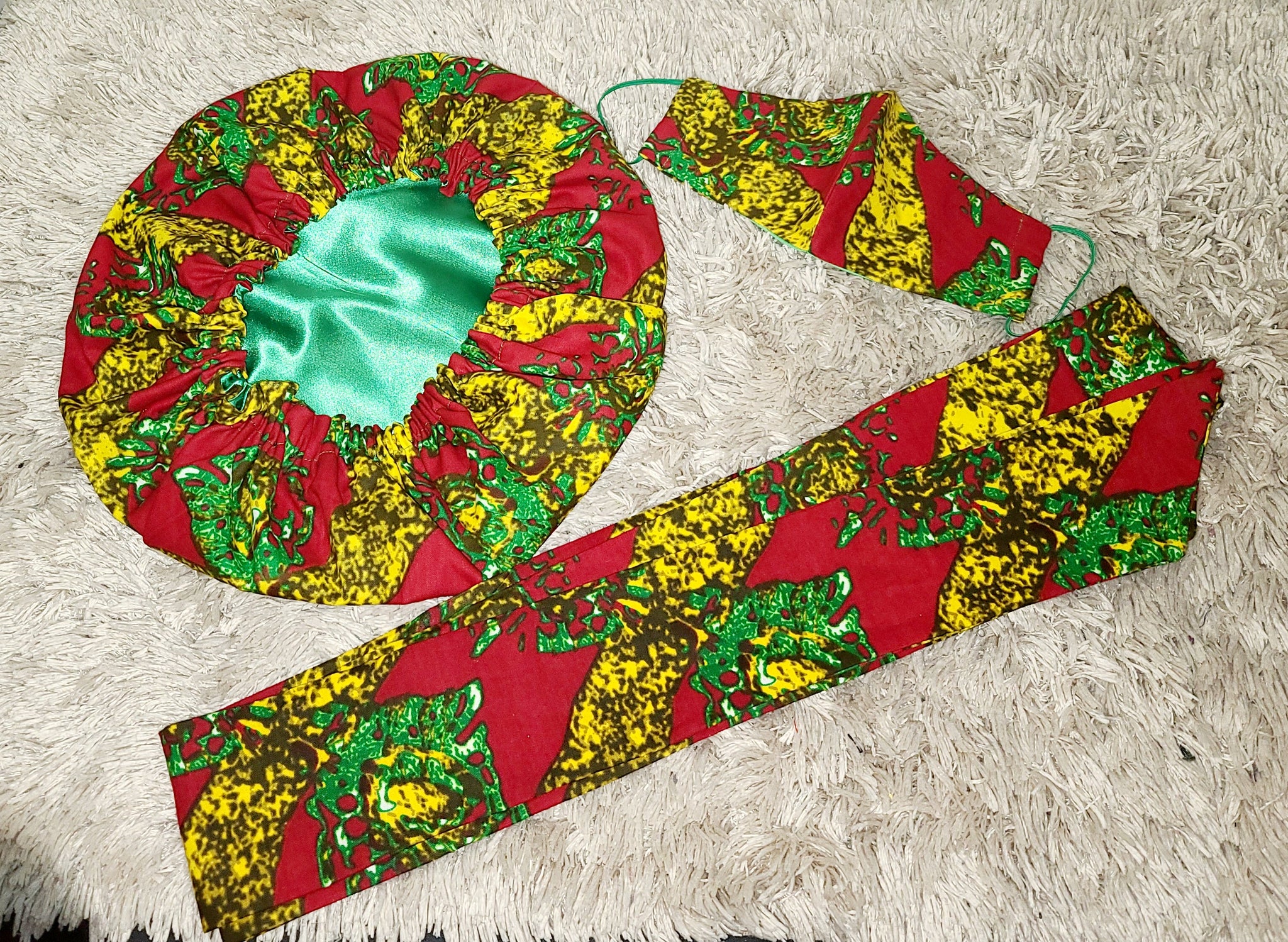 African Print Bonnet Set/Red, Green, & Yellow – Best By Vaness