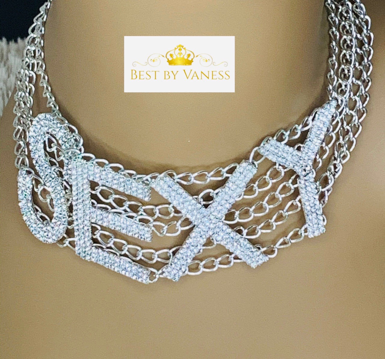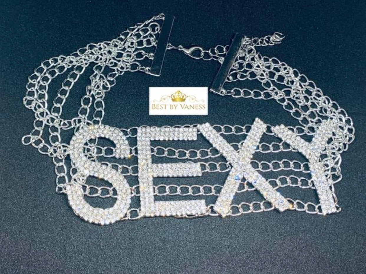 Choker letter necklace with rhinestones